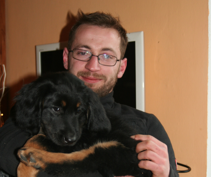 Meine Knutschkugel ist ausgezogen (seufz, nein - er wird es gut haben!!!) - und füllt ein Haus in Essen wieder mit neuem Hundewedeln, 2 "alte Hasen" in Sachen Hovawart werden den munteren kleinen Kerl ganz sicher weiter fördern, er wird auf jeden Fall nie lange Weile haben, Frauchen hat jede Menge Zeit für den Knirps und freut sich auf die Erziehungsarbeit. Da der kleine Kerl ein pfiffiges Kerlchen ist, werden beide Seiten viel Freude daran haben. 06.04.: Wir haben einen tollen Kontakt, viiiele Fotos sind schon aus der neuen Heimat eingegangen. Dem Knirps geht es gut und er lebt sich ein.